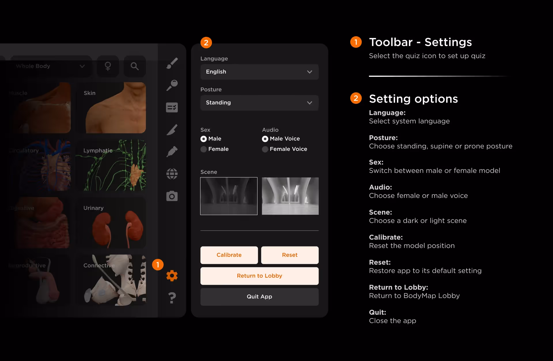 The Settings is a section where you can adjust various options to personalize your experience in BodyMap.